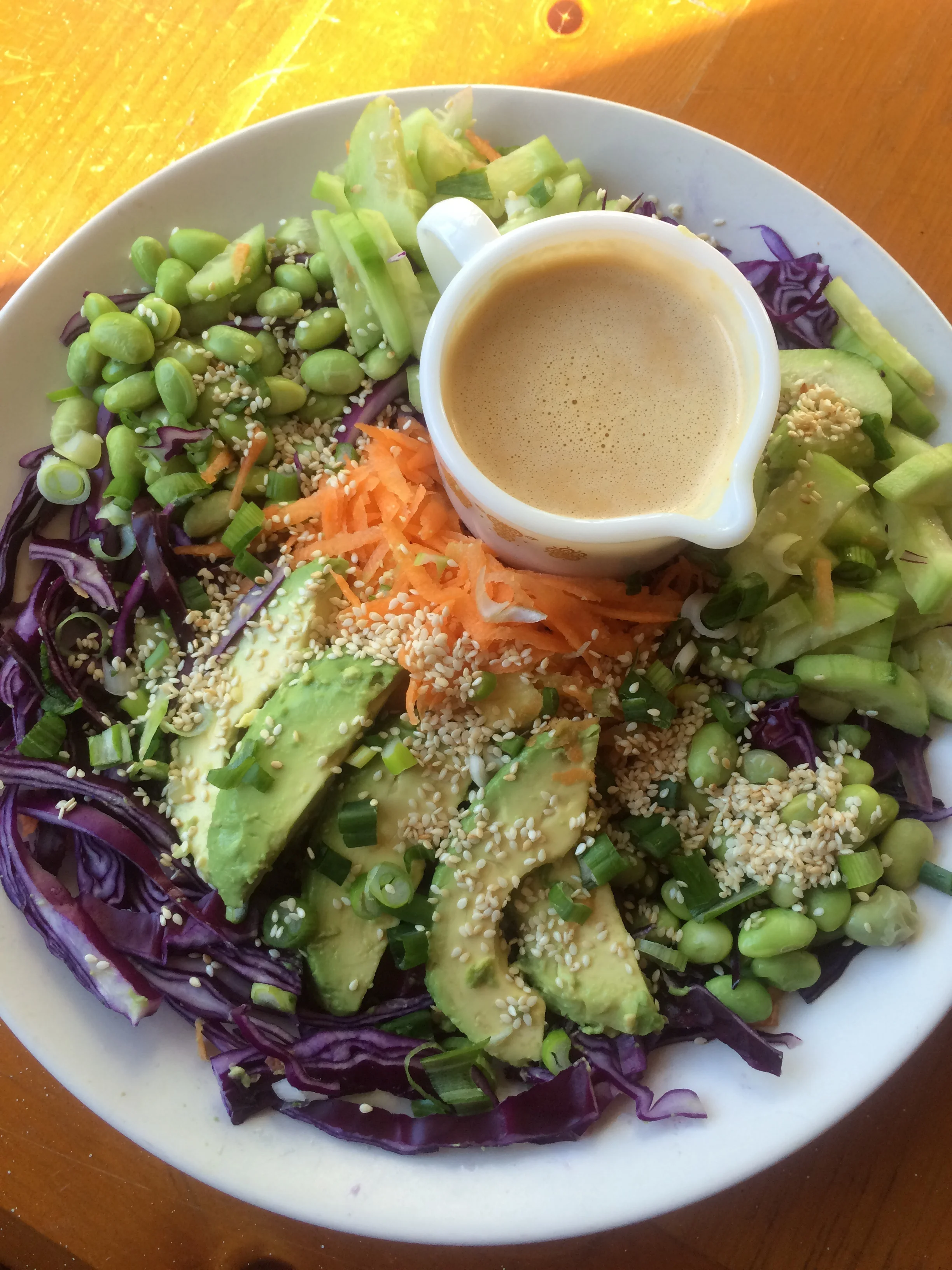 Pour over salad and top with toasted sesame seeds.